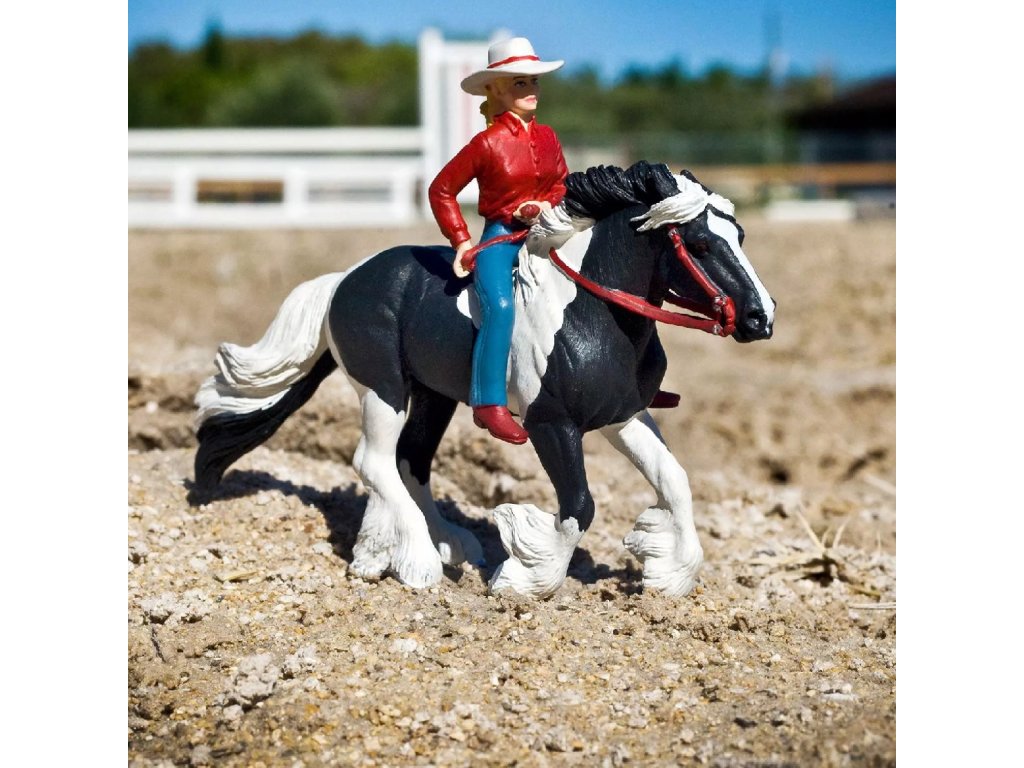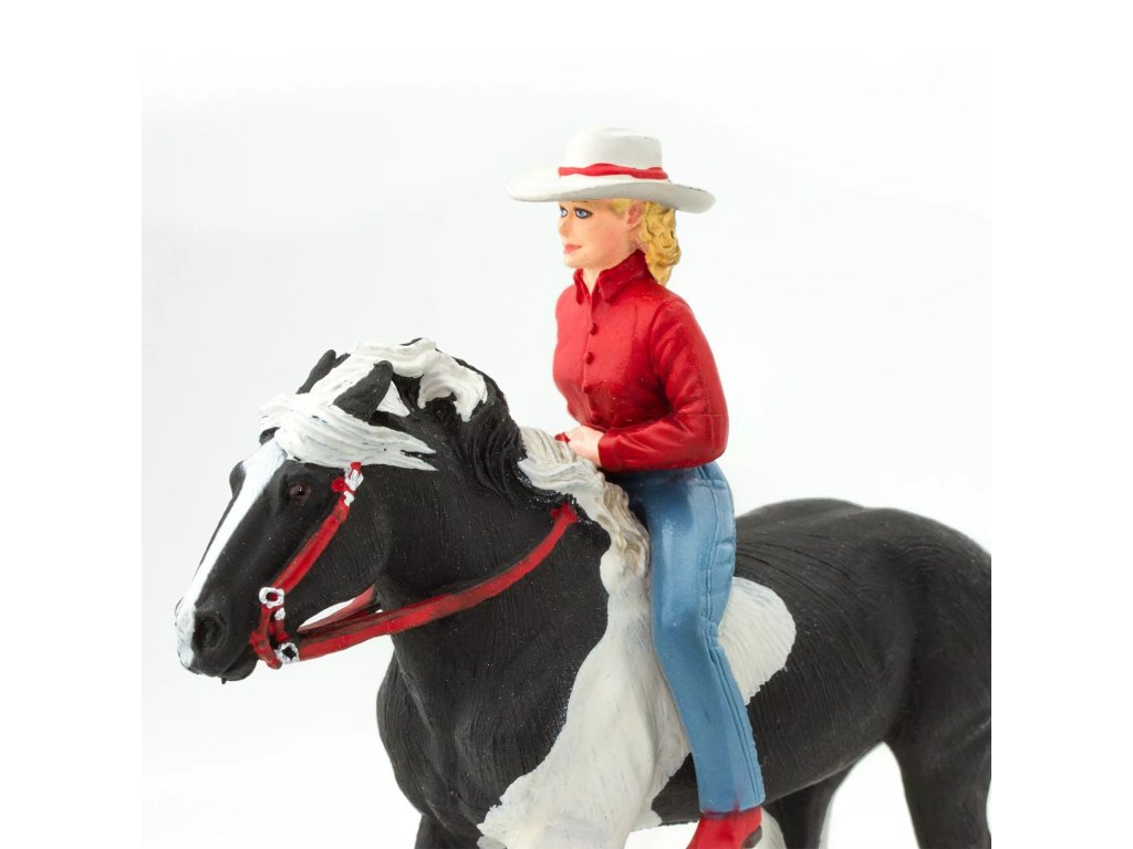 Figurina o prezintă pe curajoasa cowboy Audrey împreună cu un cal Streaming Light modelat realist. Pictura și modelarea precisă evidențiază trăsăturile caracteristice ale rasei și dinamica figurii călăreței.