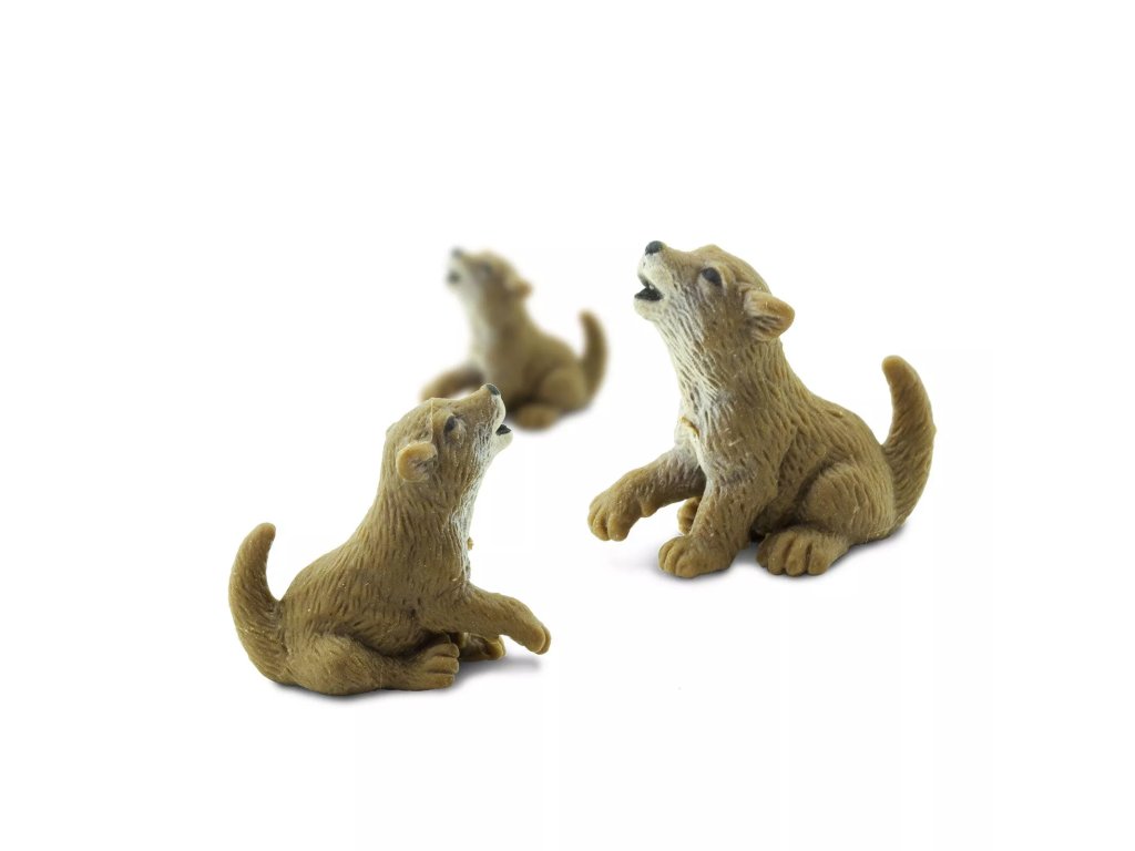Set de mini figurine pictate manual în formă de pui de lup, potrivite ca decorațiuni, instrumente de învățare sau elemente pentru activități creative. Figurinele sunt foarte mici, compacte și ușor de integrat în jocuri și activități educative.