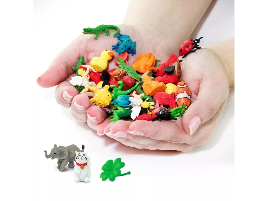 Colecție de mini figurine pictate manual care reprezintă simboluri ale norocului din diferite culturi. Figurinele sunt foarte mici (dimensiune comparabilă cu o agrafă de birou) și sunt potrivite ca decorațiuni, instrumente de învățare, creație sau cadou mic.