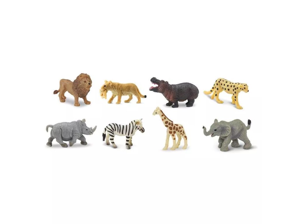 Setul include opt animale detaliate, tipice savanei africane. Figurinele sunt pictate manual, deci fiecare piesă este unică.