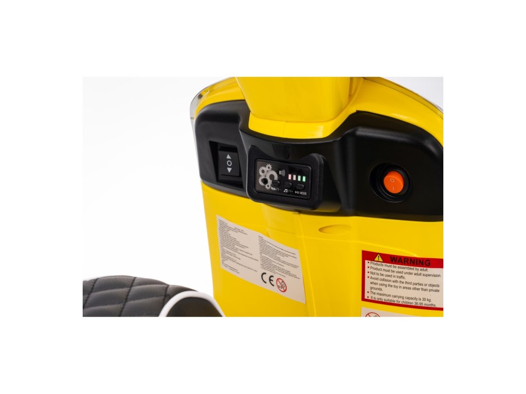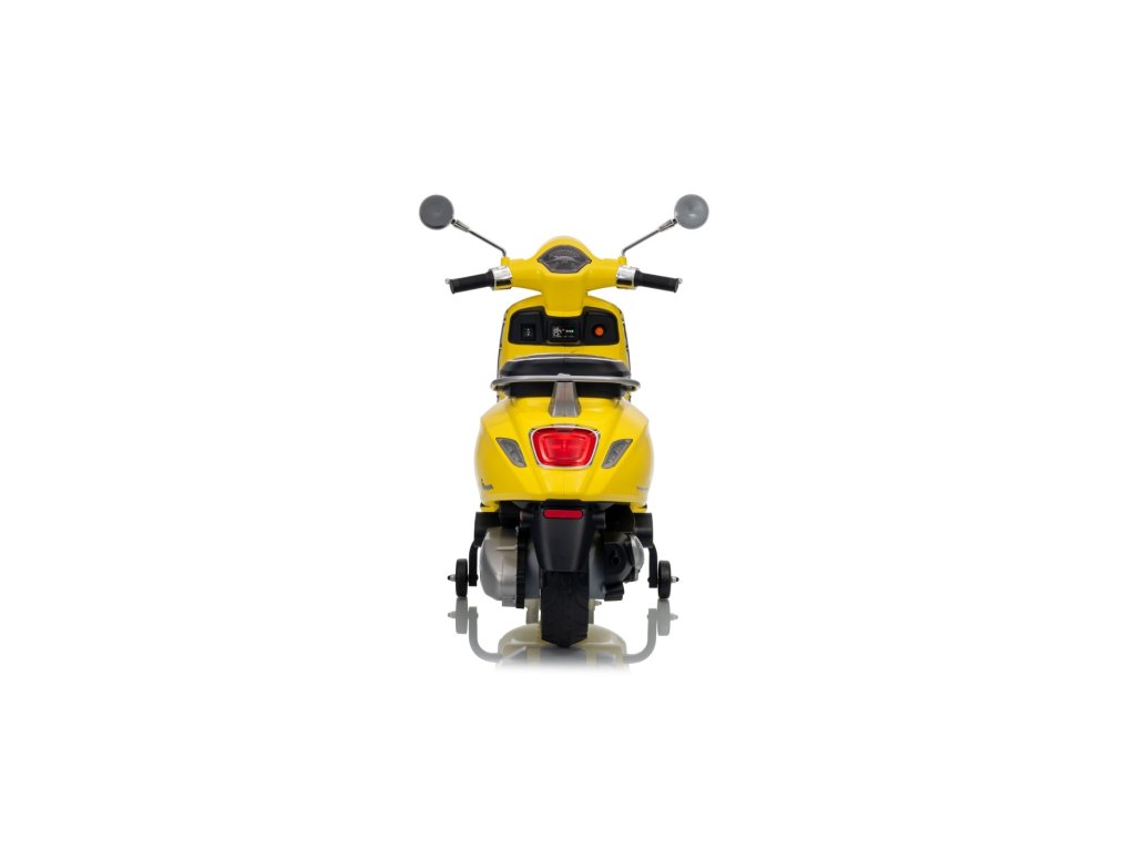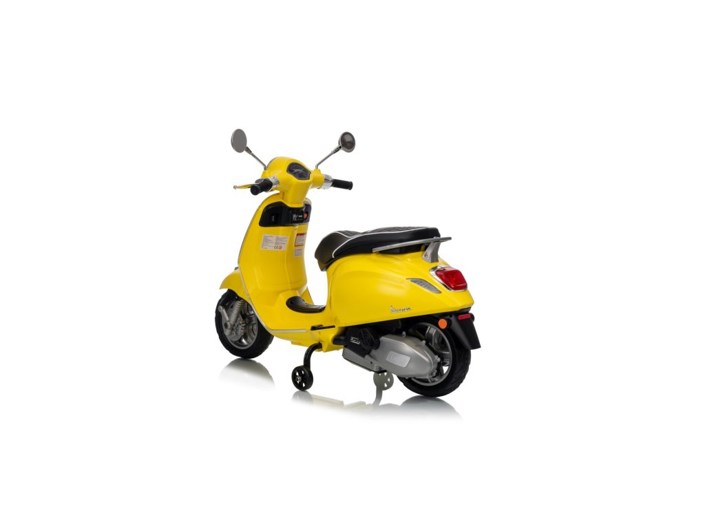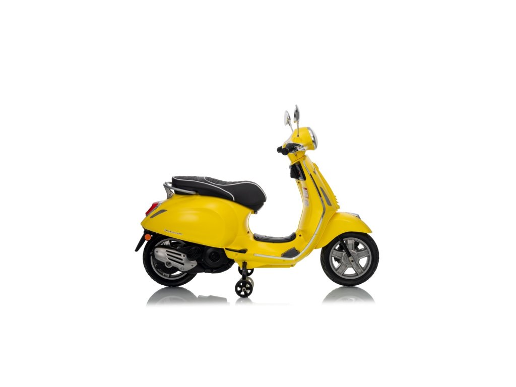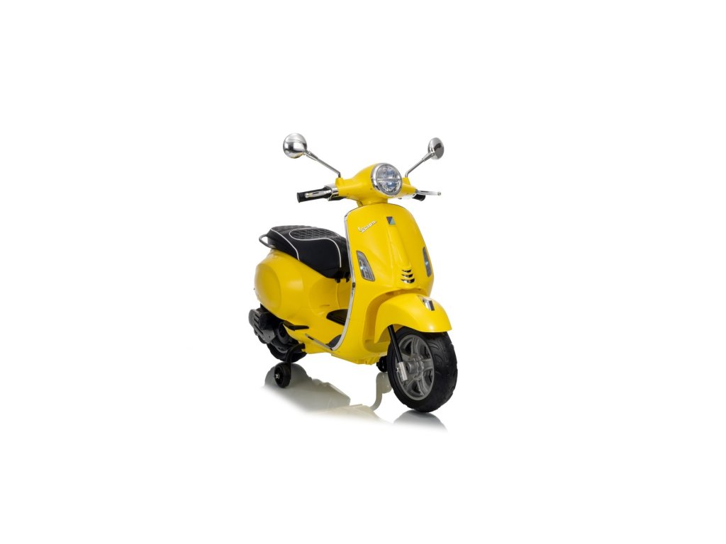 Cine nu ar cunoaște scuterul marca Vespa? Acest scuter legendar poate fi condus și de copilul dumneavoastră, datorită acestui model licențiat. Scuterul are un scaun de calitate tapițat cu piele ecologică moale și roți EVA moi. Pe lângă toate acestea, are lumini LED frumoase față și spate și poate reda fișiere MP3, astfel încât copilul să poată asculta melodia preferată în timp ce conduce și, în același timp, își îmbunătățește abilitățile de conducere.