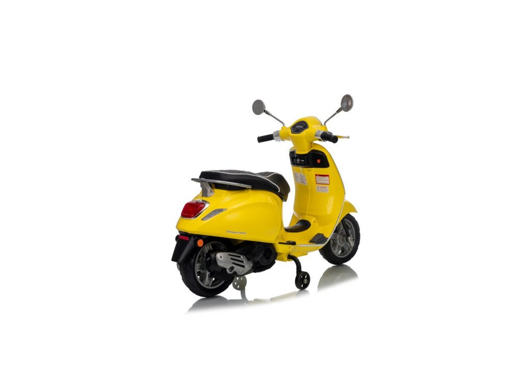 Vespa rezistă 1 oră de plimbare senzațională. Siguranța copilului este asigurată de roțile laterale și de frâna automată, care oprește scuterul când copilul ia piciorul de pe pedala de accelerație. Trotineta pentru copii este potrivită pentru copiii de la 3 ani.