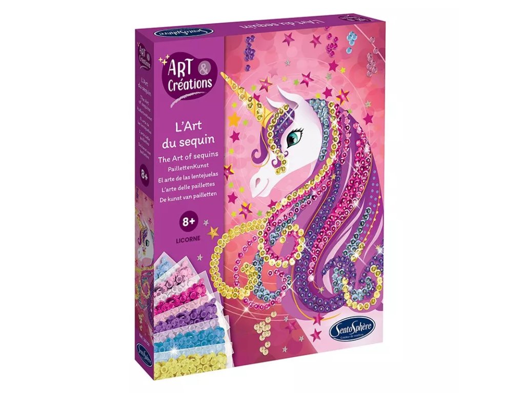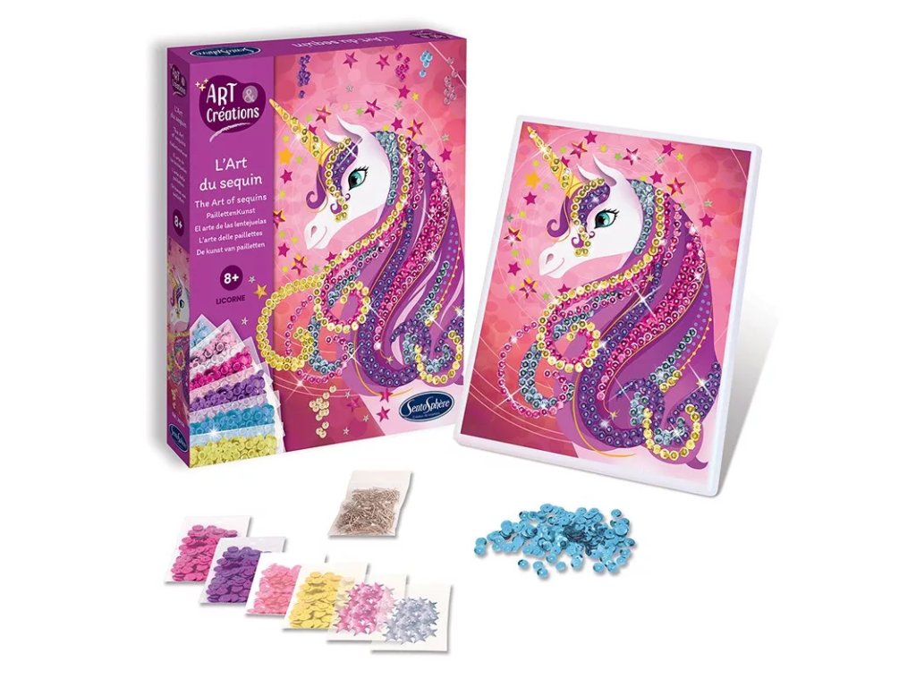 Setul artistic Paiete colorate - Unicorni va încânta copiii și adulții cărora le place să creeze în mod creativ.