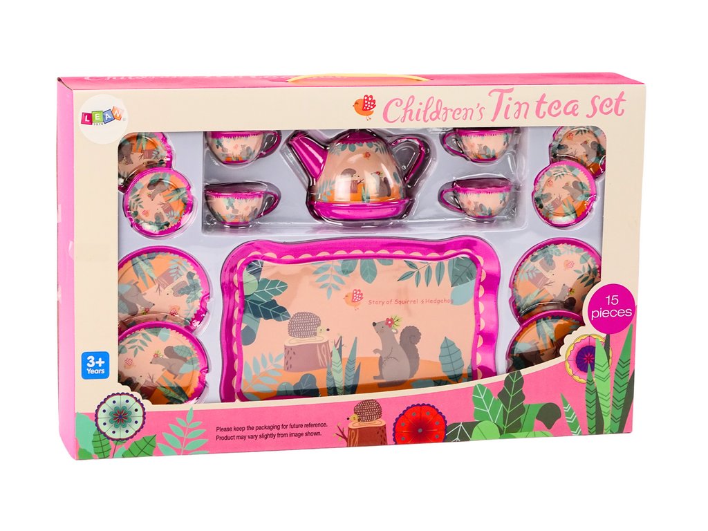 Tava este ideala pentru a servi bauturi si deserturi, iar ceainicul permite un joc realist de a turna ceai sau cafea. Cupele și farfuriile, decorate și cu motive ale animalelor din pădure, fac jocul și mai realist și mai plăcut. Farfuriile mari de desert sunt perfecte pentru a servi dulciurile tale preferate.