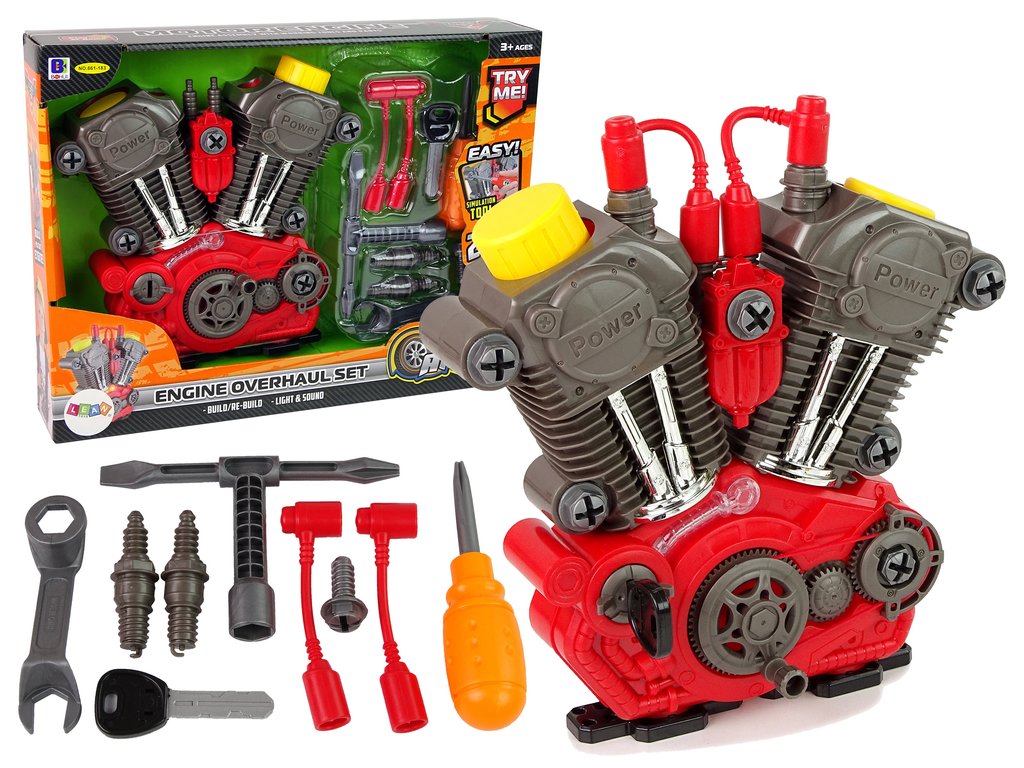 Motorul poate fi dezasamblat și reasamblat folosind uneltele incluse! Întreaga chestiune este ușor de controlat, așa că micilor bricolagi de la vârsta de trei ani sigur le va plăcea.