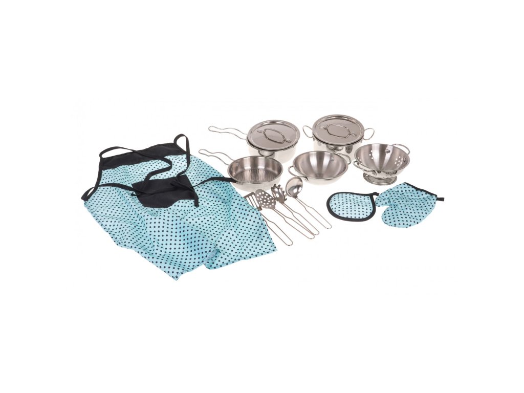 Un set de oale din metal bine realizat, robust, cu accesorii pentru copiii cu vârsta de la 3 ani în sus . Prelucrarea metalelor garantează rezistență și robustețe. Setul este format din oale si ustensile de bucatarie necesare bucatariei fiecarui copii.