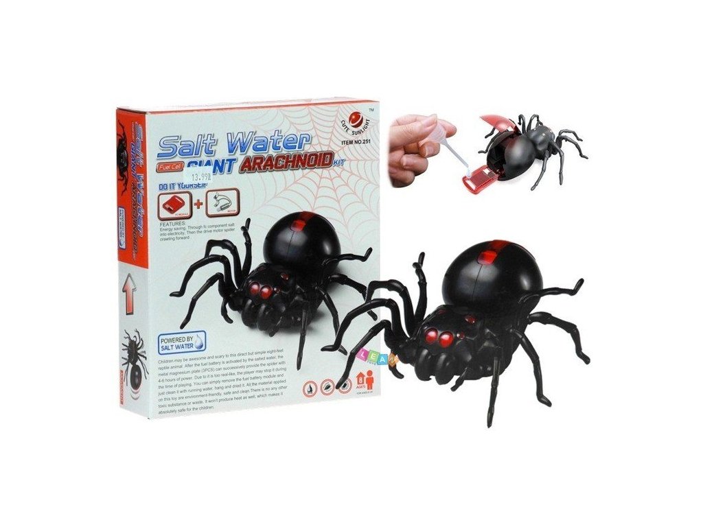 Inovația acestui ansamblu este că păianjenul nu are nevoie de baterii sau acumulatori pentru a funcționa. Este alimentat de sare și apă , ceea ce îl face nu numai ecologic, ci și educațional. După ce a fost impregnat cu apă, păianjenul se poate mișca timp de 4-6 ore. Pentru a opri, pur și simplu scoateți modulul FC umed, ștergeți-l cu un șervețel uscat și puneți-l înapoi în jucărie.
