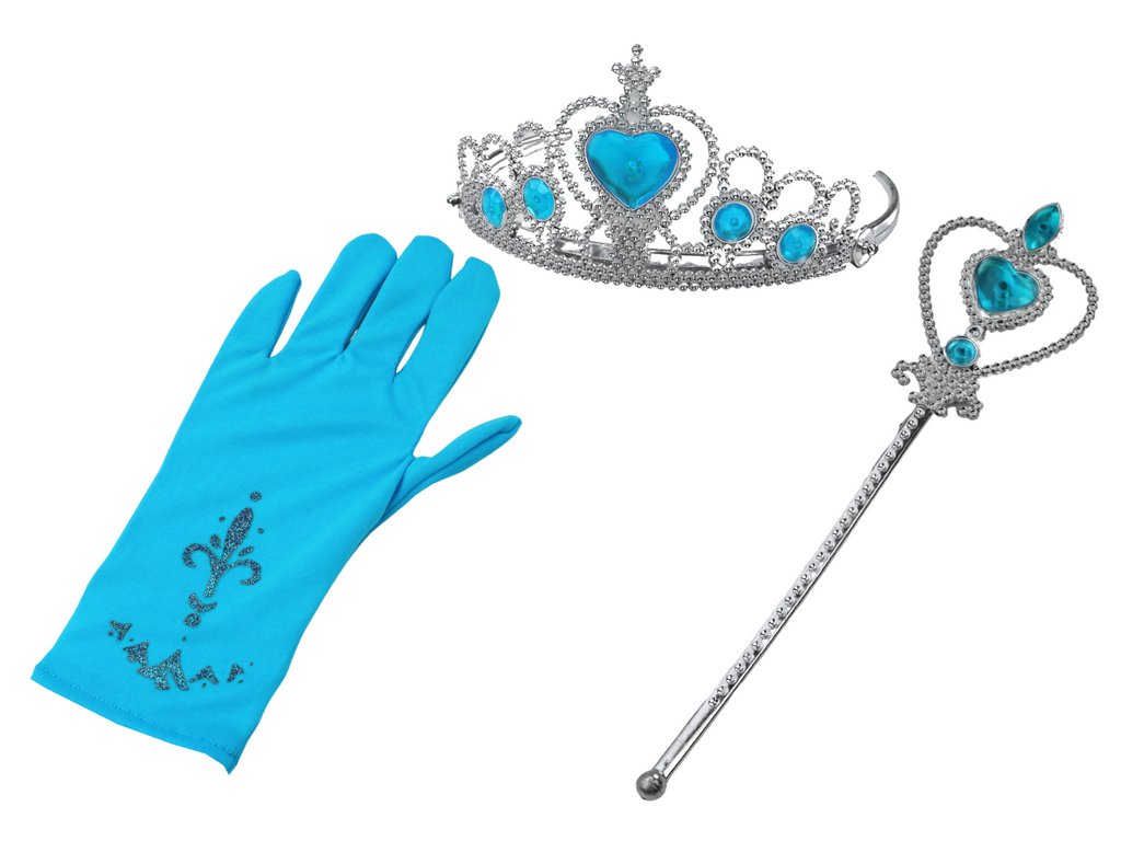 Dar asta nu este tot! Setul nostru include și o baghetă magică cu diamante albastre. Iar coroana, decorată tot cu diamante, este cireașa de pe tort a întregului set.