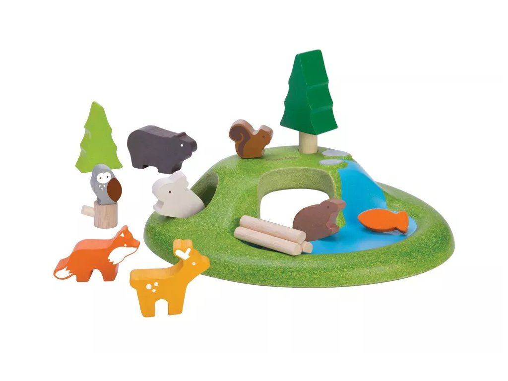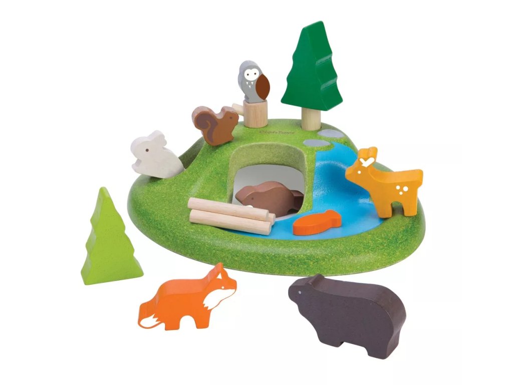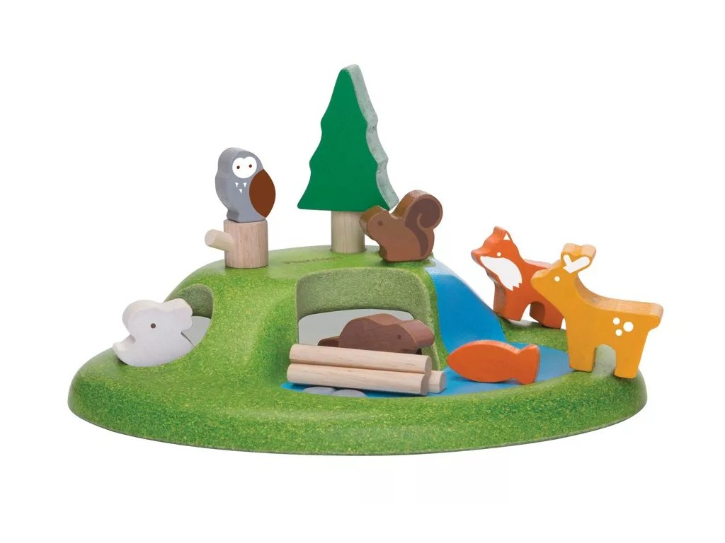 Explorează mediul forestier cu setul de figurine din lemn marca PlanToys. Jocul sprijină dezvoltarea vocabularului, imaginația, percepția socială, motricitatea fină și gândirea creativă.