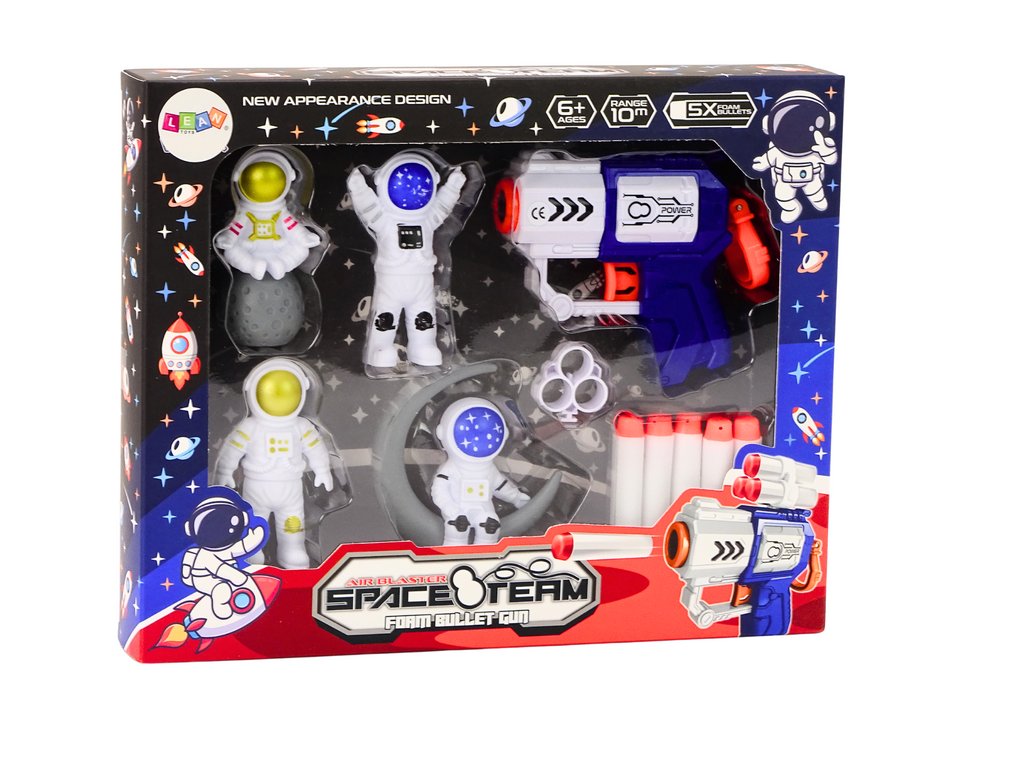 Setul de spațiu cu pistol cu săgeți și astronauți este cadoul perfect pentru orice mic iubitor de spațiu, oferind multă distracție, învățare și distracție de dezvoltare.
