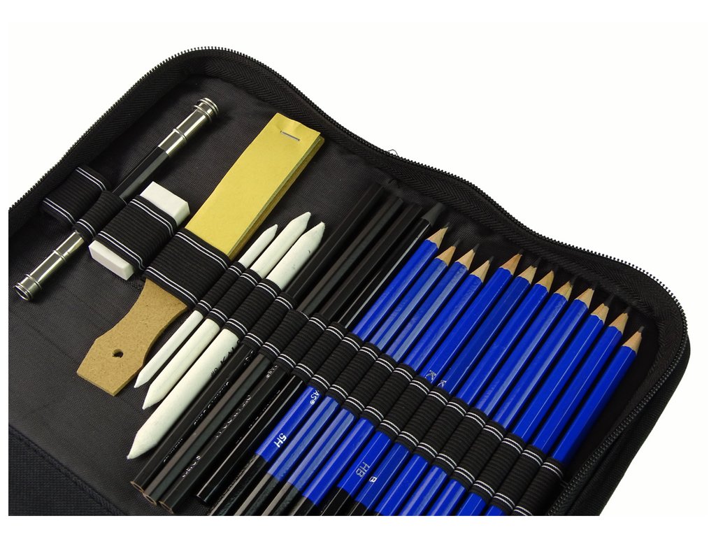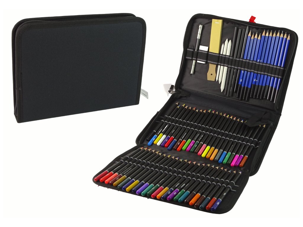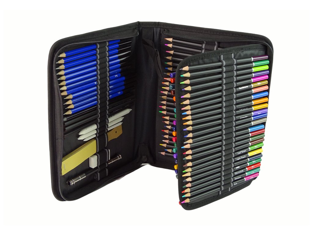 - Creioane și creioane: Setul conține 72 de creioane și 12 creioane de duritate diferită, care permit desenarea și umbrirea precise.