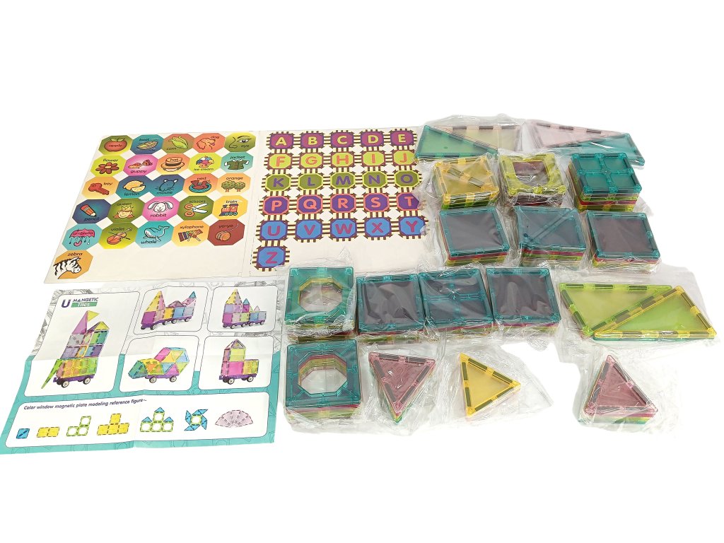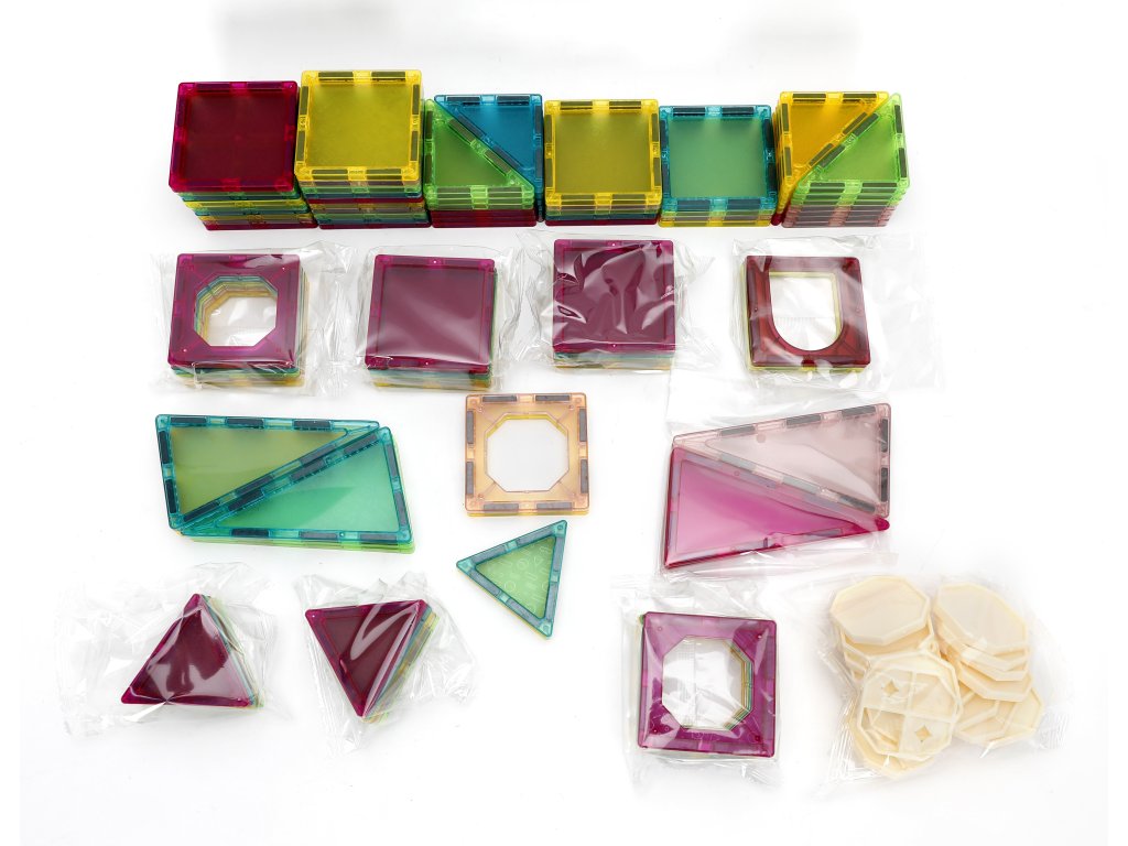 Un set magic de 118 piese magnetice de 7,5 cm deschide o lume a fanteziei, unde copiii pot construi castele, case, turnuri și propriile lumi colorate. Piesele transparente creează efecte frumoase de lumină și se fixează excelent datorită magneților puternici. Setul de construcție este ideal pentru micii constructori cărora le place combinarea creativă a formelor.