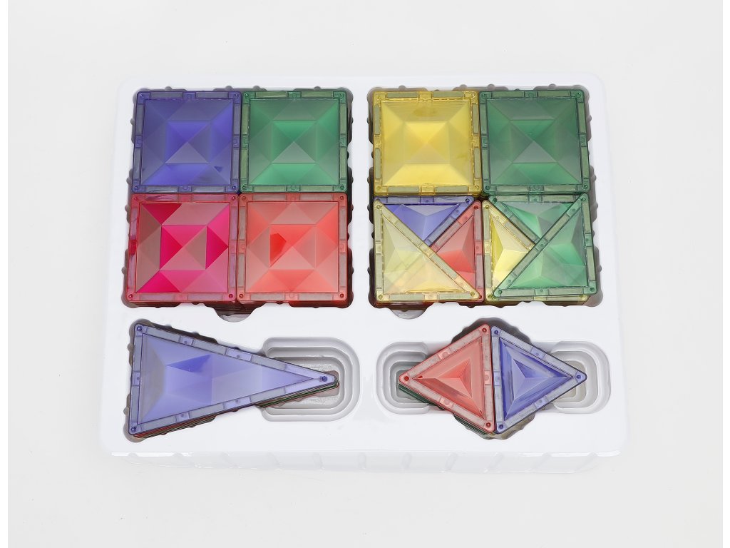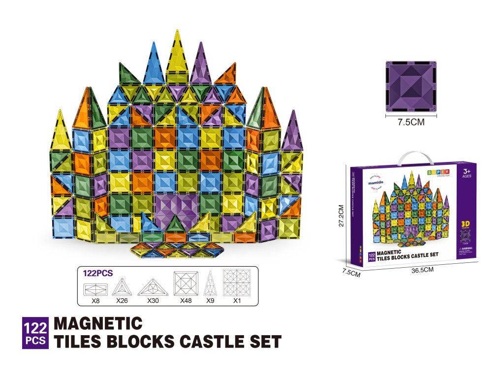 Setul conține 122 panouri magnetice în culori vibrante, care se conectează ușor pentru a crea diverse forme. Formele drepte sunt perfecte pentru crearea de pereți mari, podele și construcții detaliate. Setul de construcție încurajează creativitatea, gândirea logică și imaginația spațială.