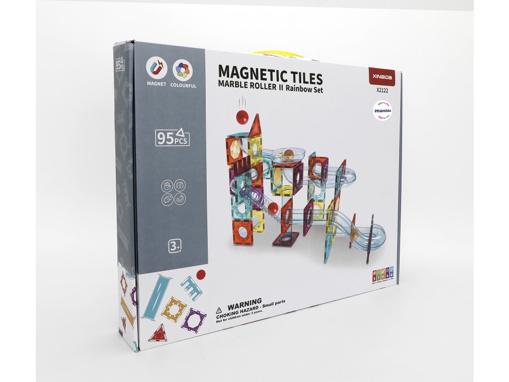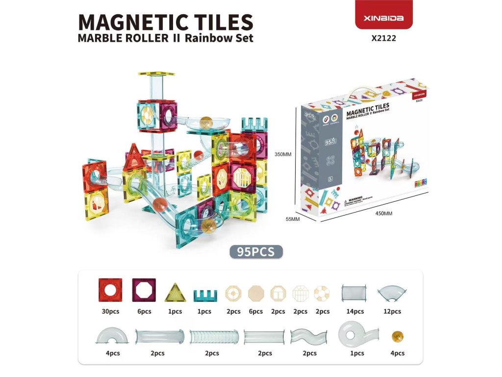Set de construcție magnetic colorat cu 95 de piese, pistă cu bile MT1492