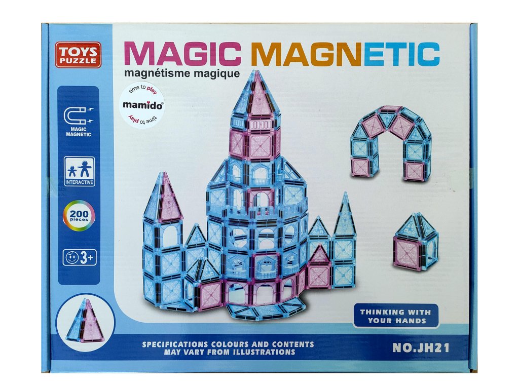 Construiește propriul tău castel, turnuri sau case colorate cu setul de construcție magnetic cu 200 de piese. Datorită magneților puternici, piesele se conectează ușor și rămân ferm împreună, făcând construcțiile stabile și rezistente chiar și în timpul jocului.