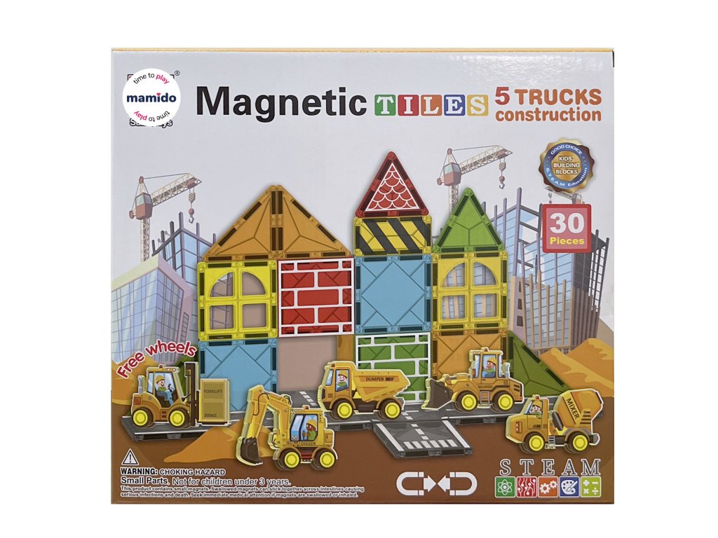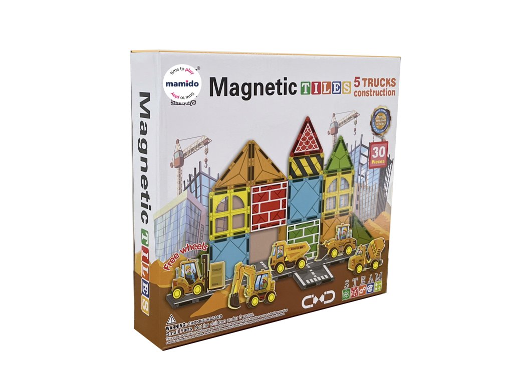 Pornește în lumea transporturilor și a construcțiilor cu un original set de construcție magnetic, care constă din 30 de piese. Copiii își pot construi un întreg oraș cu drumuri, semne, clădiri și vehicule. Piesele magnetice colorate se conectează ușor și permit crearea de combinații infinite, de la structuri simple la scene de trafic elaborate. Setul include, de asemenea, mașinuțe cu șasiu pe roți, indicatoare rutiere, o macara și alte accesorii, datorită cărora jocul capătă o notă realistă.