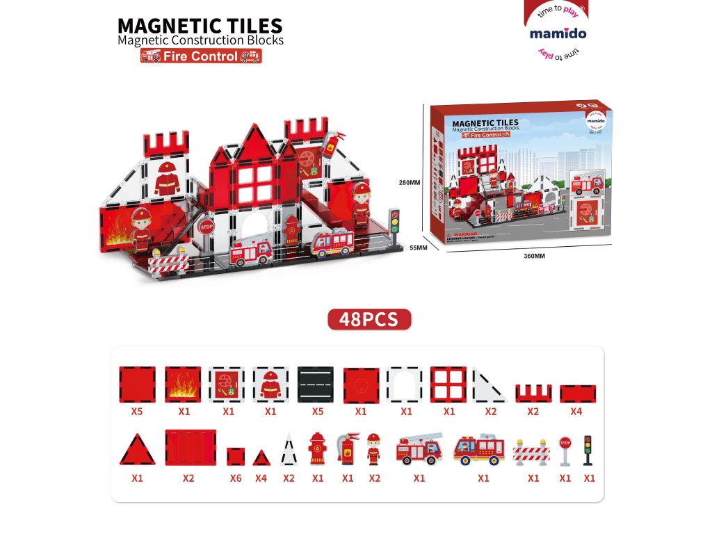 Set de construcție magnetic pompieri 48 piese, stație de pompieri MT1482