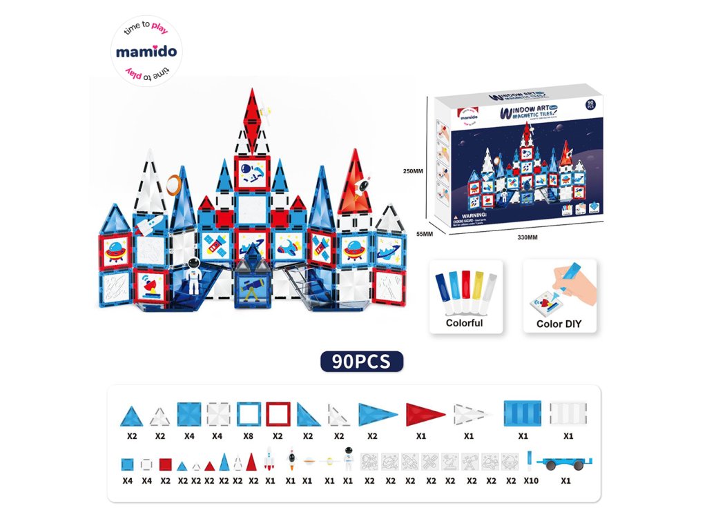 Descoperă o lume infinită a construcțiilor creative cu acest set magnetic de 90 de piese, care combină tehnologia cu arta. Datorită pieselor colorate transparente în stilul de artă vitraliu, poți construi castele, rachete, stații spațiale sau forme fantastice și poți urmări cum lumina trece prin construcție, creând efecte fermecătoare.
