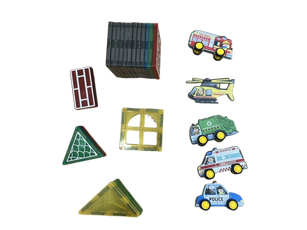 Set de construcție magnetic trafic oraș 30 piese, 5x vehicule de serviciu MT1438