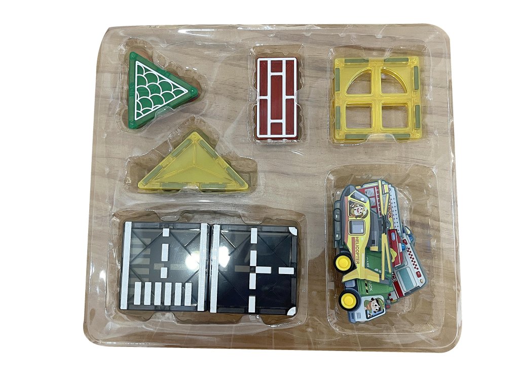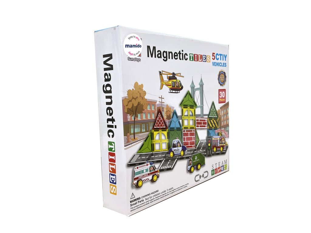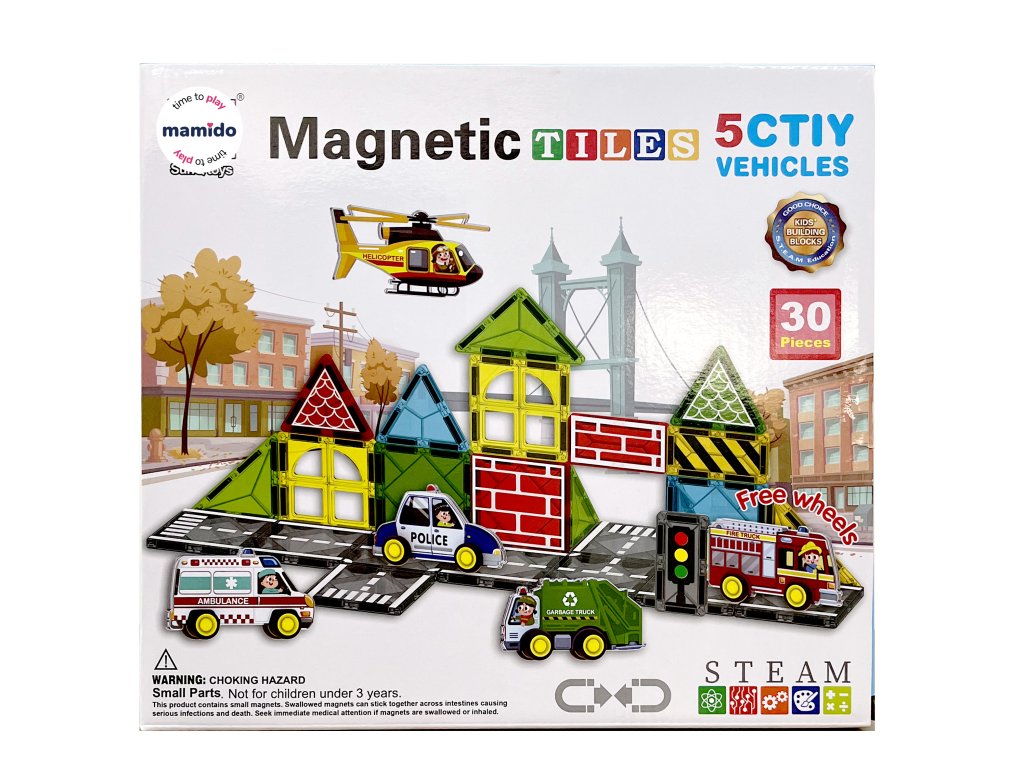 Pornește în lumea transporturilor și a construcțiilor cu un original set de construcție magnetic, care constă din 30 de piese. Copiii își pot construi un întreg oraș cu drumuri, semne, clădiri și vehicule. Piesele magnetice colorate se conectează ușor și permit crearea de combinații infinite, de la structuri simple la scene de trafic elaborate. Setul include, de asemenea, mașinuțe cu șasiu pe roți, indicatoare rutiere, o macara și alte accesorii, datorită cărora jocul capătă o notă realistă.
