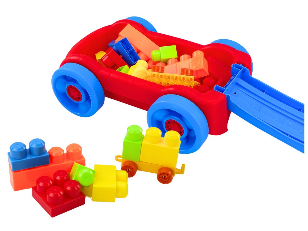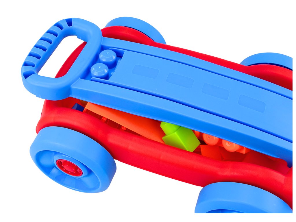 Setul de blocuri inclus in carucior iti permite sa construiesti un numar nelimitat de constructii colorate care stimuleaza creativitatea si imaginatia copiilor. Cuburile nu oferă doar divertisment, ci dezvoltă și abilitățile manuale ale copilului și coordonarea vederii și mișcării.