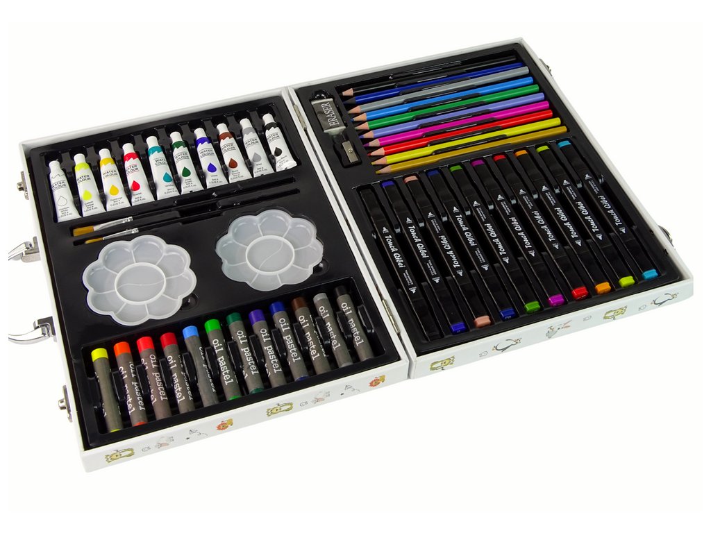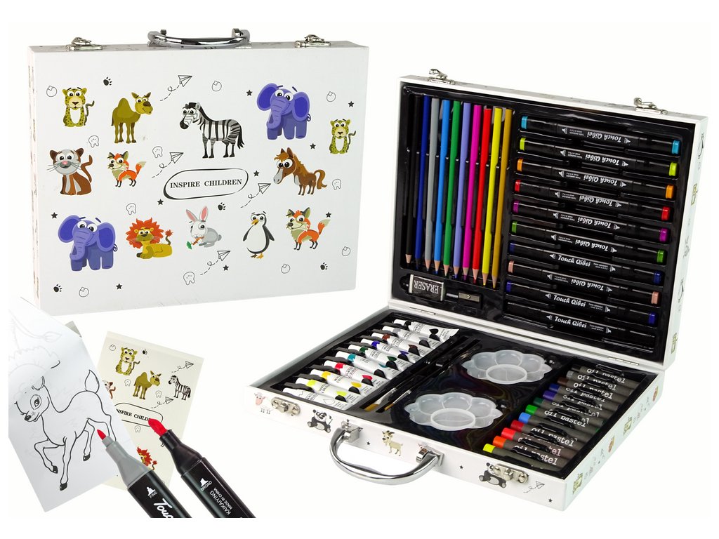Acest set de artă valiza albă cu animale drăguțe este cadoul perfect pentru micii artiști care doresc să exploreze lumea artei și a jocului. Setul mic artist conține 68 de piese precum creioane, vopsele și pensule. Acest set de artă dezvoltă creativitatea și imaginația la copii, susține dezvoltarea abilităților de pictură și desen și, de asemenea, încurajează experimentarea cu culori și tehnici.