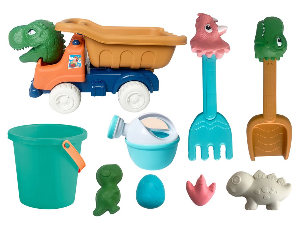 Set de jucării cu nisip - basculantă, găleată, matrițe, dinozauri
