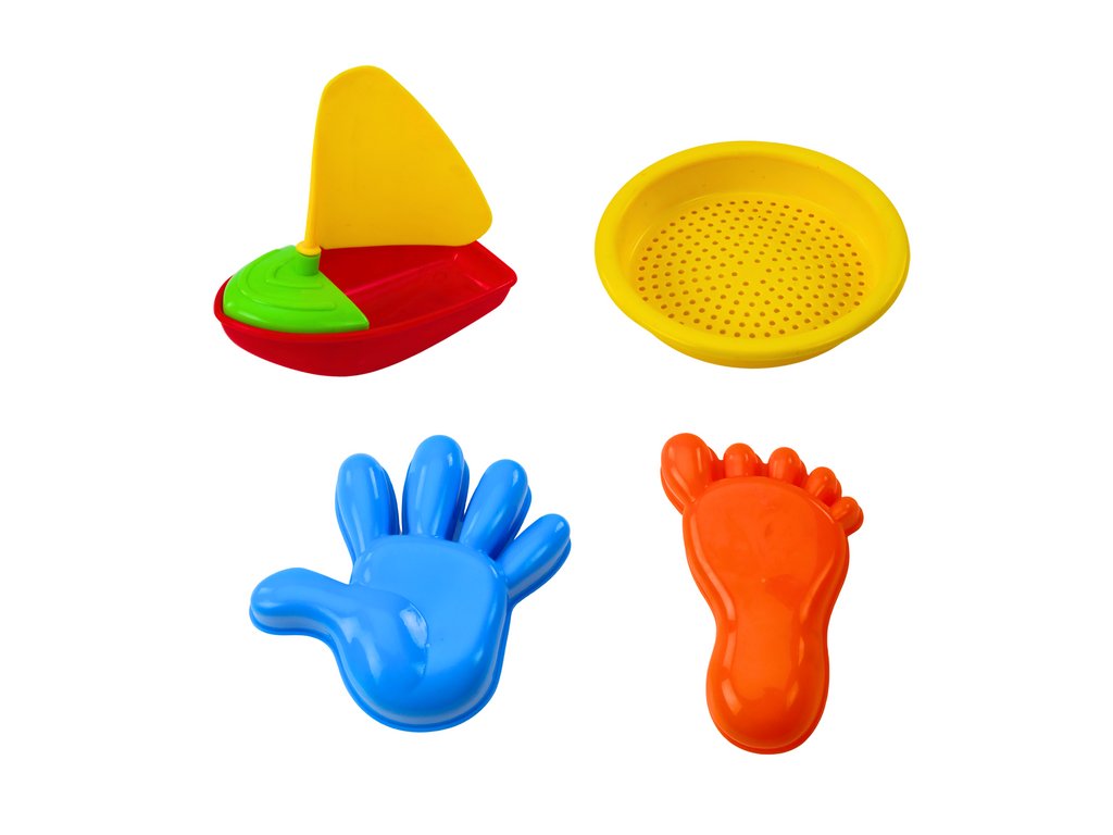 Setul include o greblă, lopată, barcă, plasă și matrițe pentru a încuraja creativitatea și abilitățile manuale. Fabricat din materiale de calitate și sigure, este rezistent la intemperii și ușor de întreținut, garantând distracție îndelungată pe nisip.