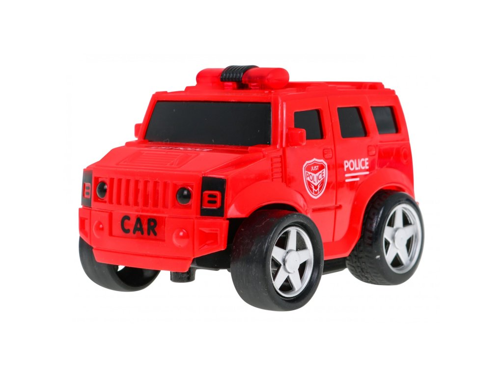 - Mașină roșie de poliție: 9,5 x 6 x 7 cm