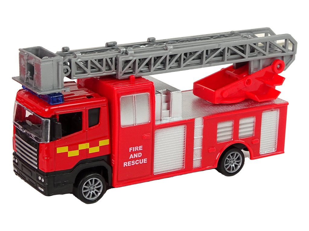 În plus, setul include o mașină de pompieri mare, cu o scară extensibilă, care ajunge până la 32 cm, alimentată tot de o unitate de frecare. Acesta reprezintă perfect echivalentul său real.
