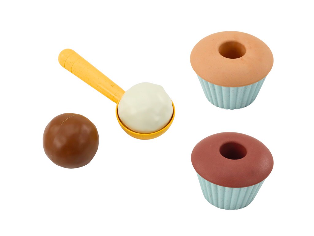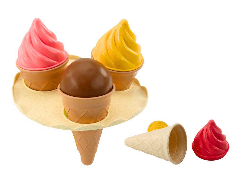 Cutia cu nisip este o jucărie minunată care îi va atrage pe copii în lumea jocului creativ cu „prepararea” deserturilor cu înghețată. Include patru conuri, patru umpluturi colorate, două prăjituri mici, o linguriță și un suport de conuri, permițând copiilor să joace rolul și să-și creeze propriile delicii cu înghețată de nisip.