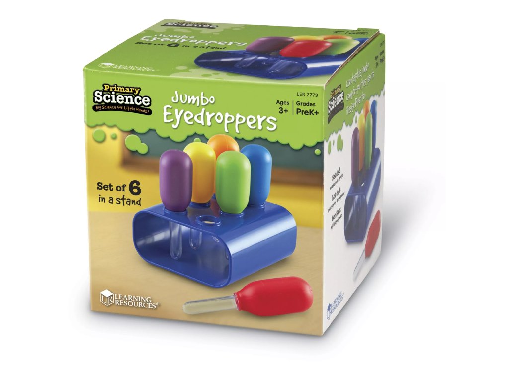Set de pipete conceput pentru mânuțele mici, care sprijină dezvoltarea motricității fine și permite experimente simple și o explicație clară a cauzei și efectului.