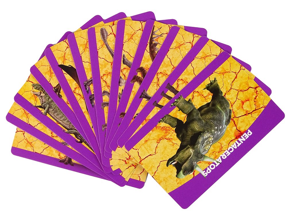 Oul uriaș ascunde 12 figuri de dinozaur, cardurile vă permit să identificați specia, iar descrierea de pe spate evidențiază o mulțime de informații utile. Ridică instrumentele și devii un explorator!