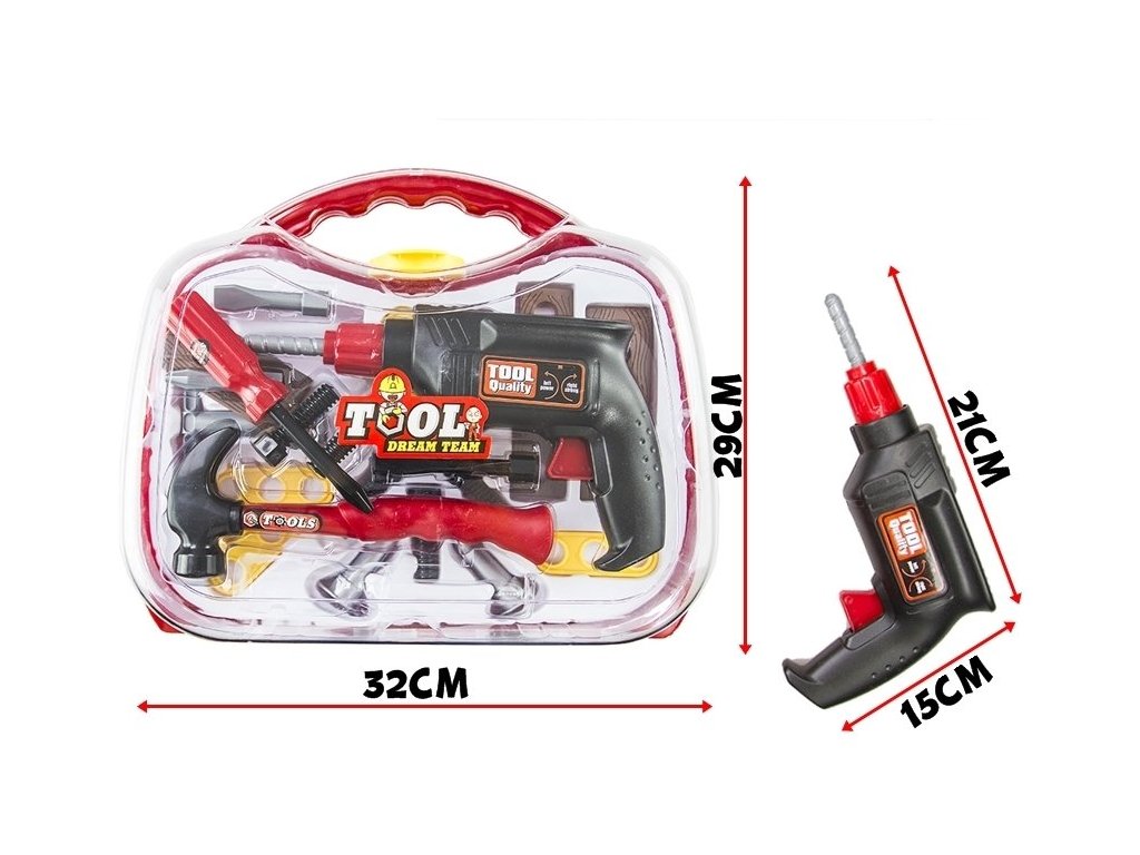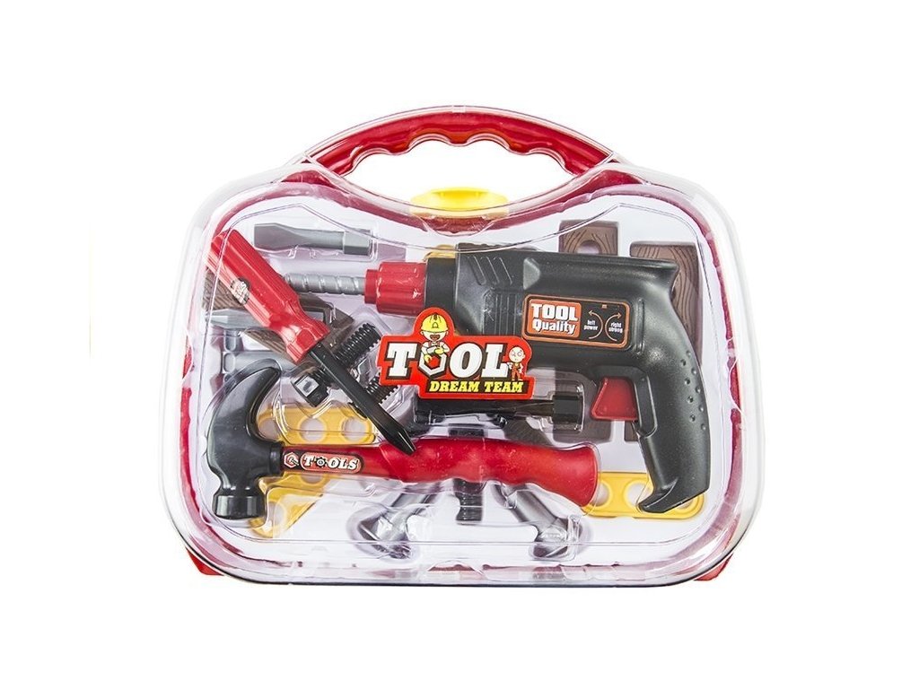 Această cutie completă de scule îi va oferi copilului tău distracția de a fi un adevărat om de mână sau constructor. Întreaga gamă de scule este depozitată elegant într-o cutie de plastic transparentă care facilitează organizarea și depozitarea.