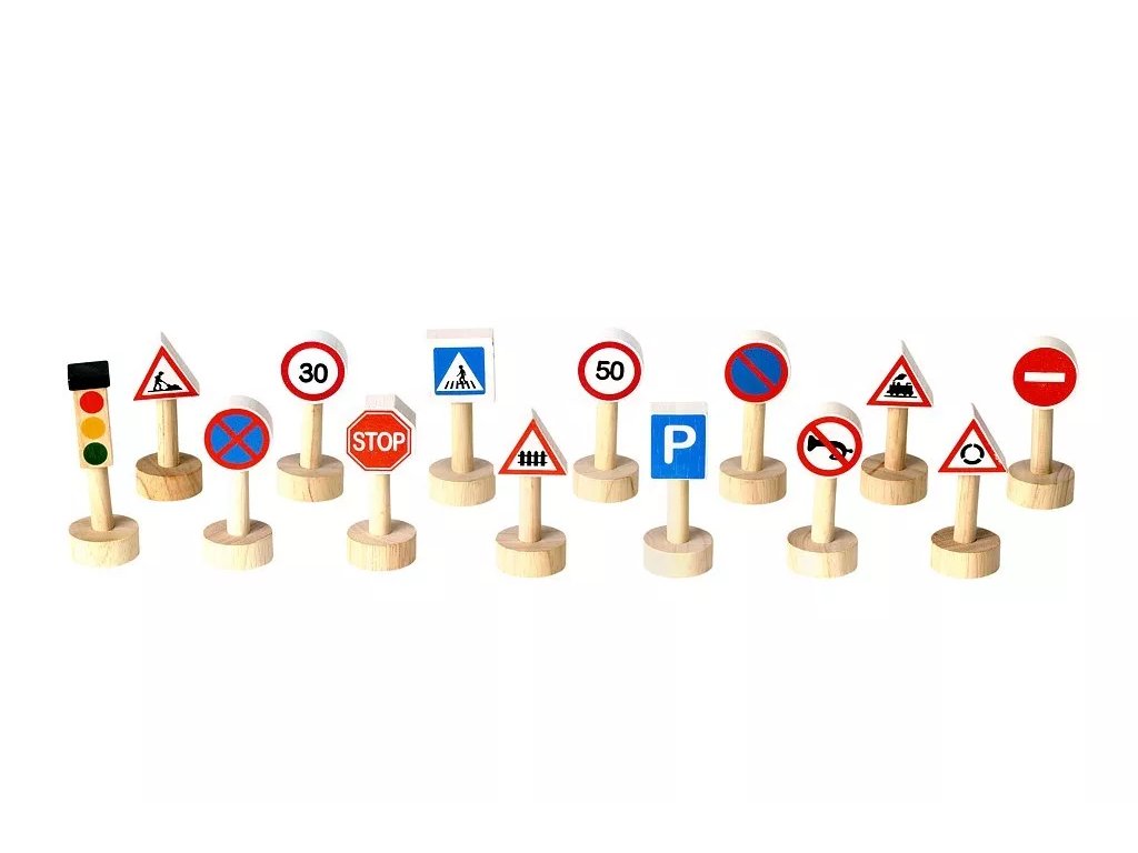 Setul de semne de circulație de la Plan Toys este o completare potrivită pentru circuitele auto și un ajutor didactic practic pentru antrenarea și învățarea regulilor de circulație pentru copii.