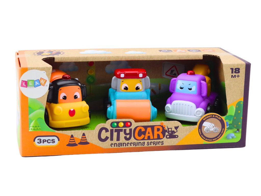 Setul de 3 mașini de construcție este o jucărie ideală pentru copiii mici care combină siguranța, creativitatea și distracția. Include trei vehicule drăguțe (betonieră, camion de remorcare și tăvălugă) din cauciuc moale și plastic durabil, fără margini ascuțite și piese mici.