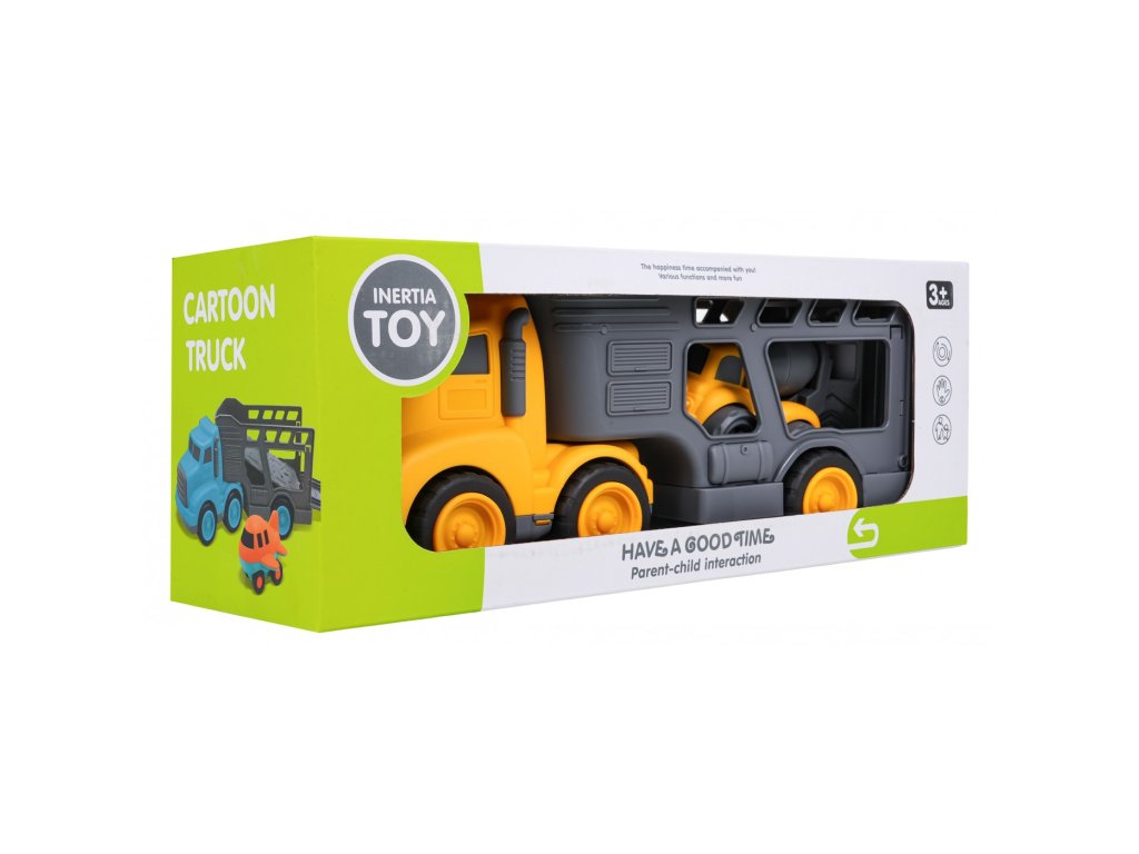 Set de vehicule cu platformă și betonieră pentru copii de la trei ani. Setul este fabricat din plastic de cea mai înaltă calitate în culori vii. Va fi o distracție grozavă pentru micii iubitori de vehicule de construcții. Mașina autobetonieră are roți mobile cu tracțiune pe roțile din față, se mișcă foarte ușor pe suprafață. Putem roti și cuva pentru beton.