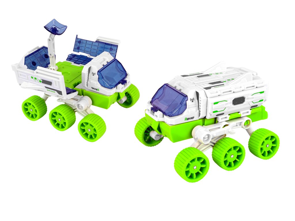 - Un rover cu un satelit extensibil, panouri solare și un cockpit care se deschide
