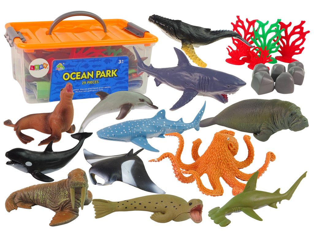 Figurile sunt realizate cu cea mai mare grijă și reflectă perfect aspectul realist al acestor creaturi. Setul include, de asemenea , plante marine și stânci, astfel încât copilul să poată crea o lume subacvatică realistă în camera lui.