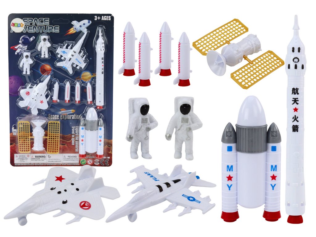 Setul include figuri de cosmonauți în costume spațiale unice. Pe lângă cosmonauți, setul include și rachete de diferite dimensiuni și forme.