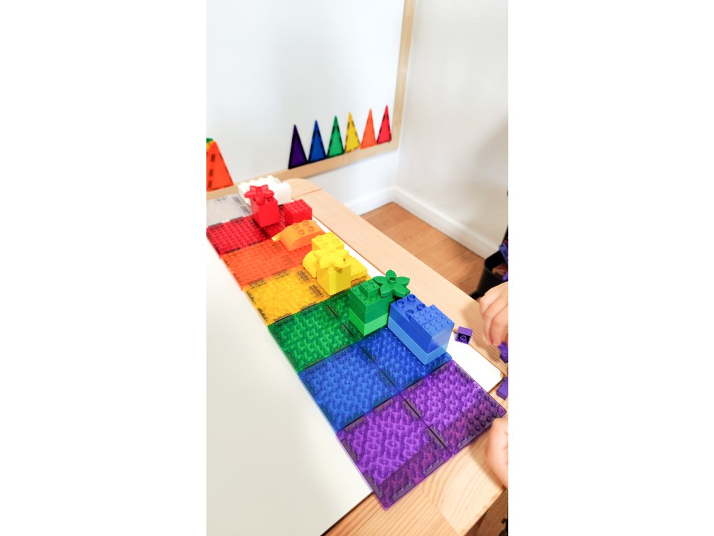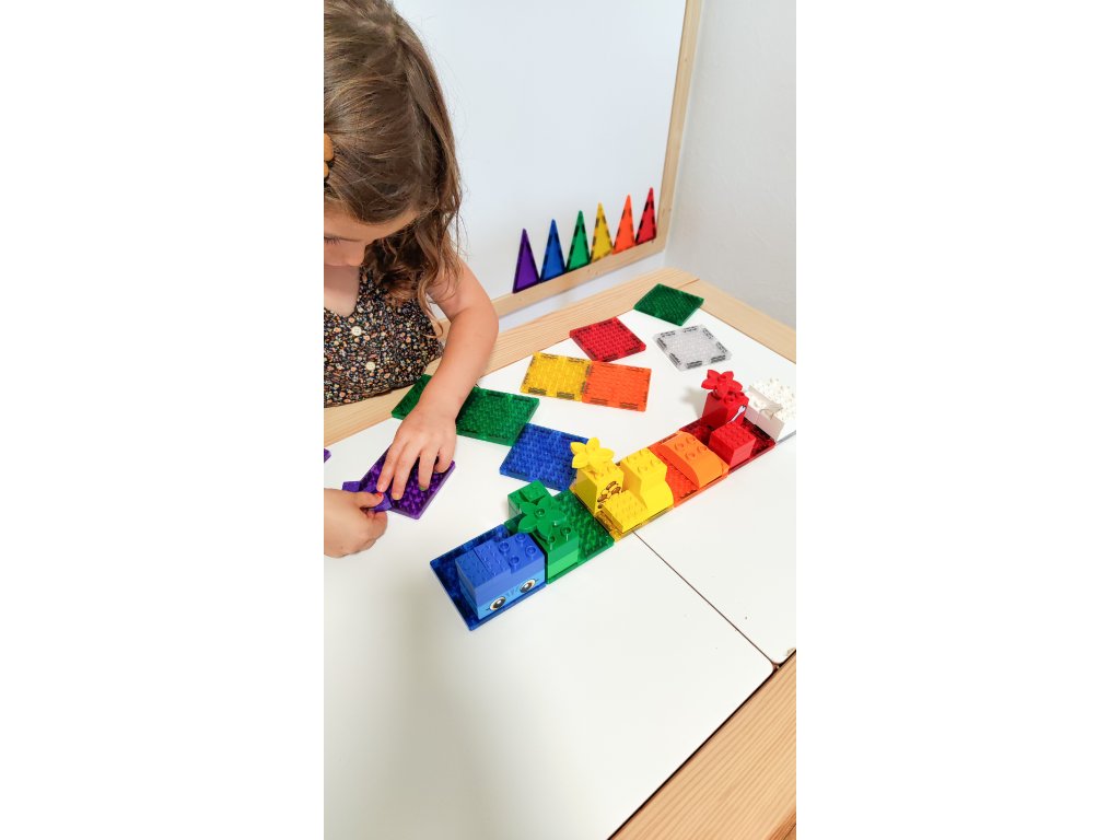 16 pătrate magnetice cu proeminențe pentru conectarea LEGO® și LEGO DUPLO®