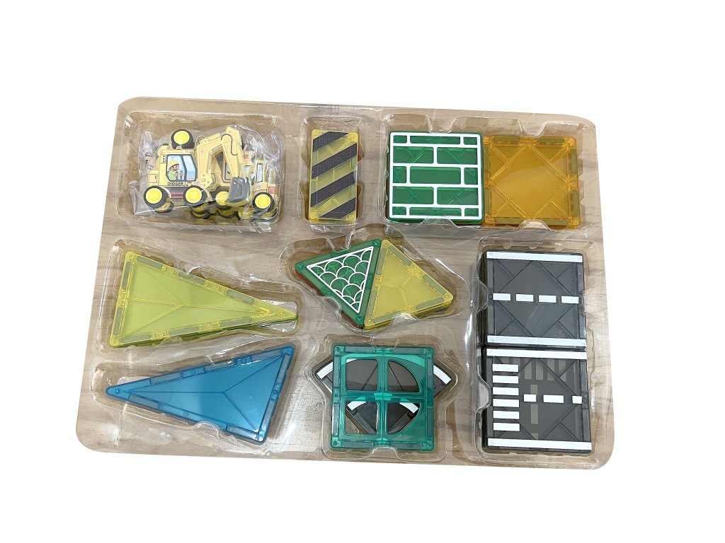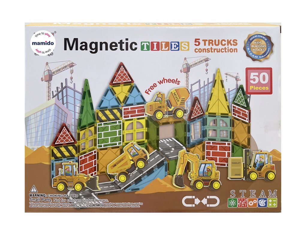 Pornește în lumea transporturilor și a construcțiilor cu o piesă de construcție magnetică originală, compusă din 50 de piese. Copiii își pot construi un întreg oraș cu drumuri, semne, clădiri și vehicule. Piesele magnetice colorate se conectează ușor și permit crearea de combinații infinite, de la structuri simple la scene de trafic elaborate. Setul include, de asemenea, mașinuțe cu șasiu pe roți, indicatoare rutiere, o macara și alte accesorii, datorită cărora jocul capătă o notă realistă.