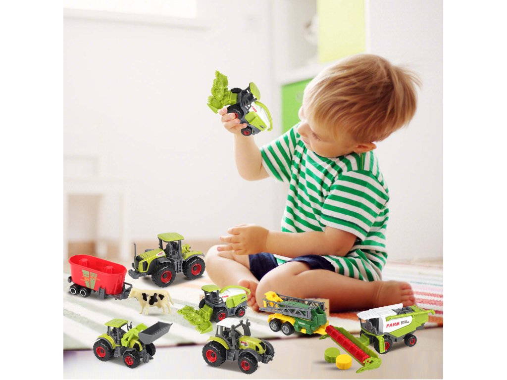 Un set de vehicule agricole în miniatură care reproduc vehicule reale va atrage cu siguranță fiecare copil. Toate vehiculele pot fi conduse și sunt create cu cea mai mare precizie până la detalii.