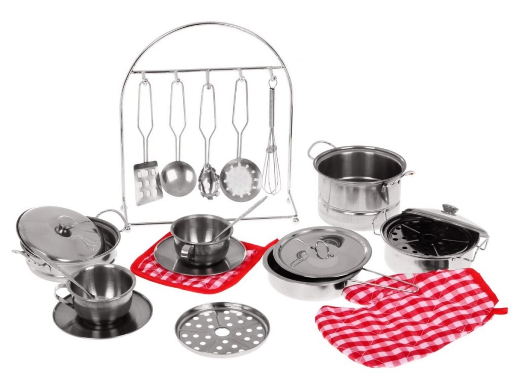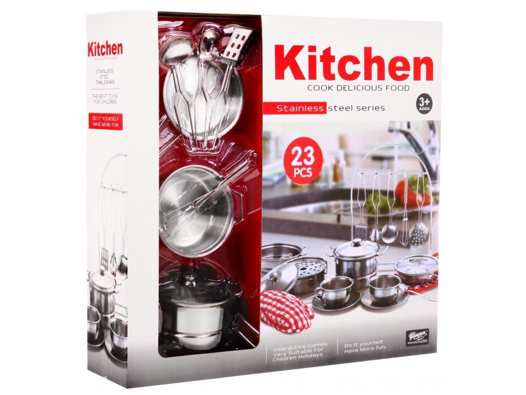 Set mare de ustensile din inox pentru bucatarie copii 23 buc Oale Sort