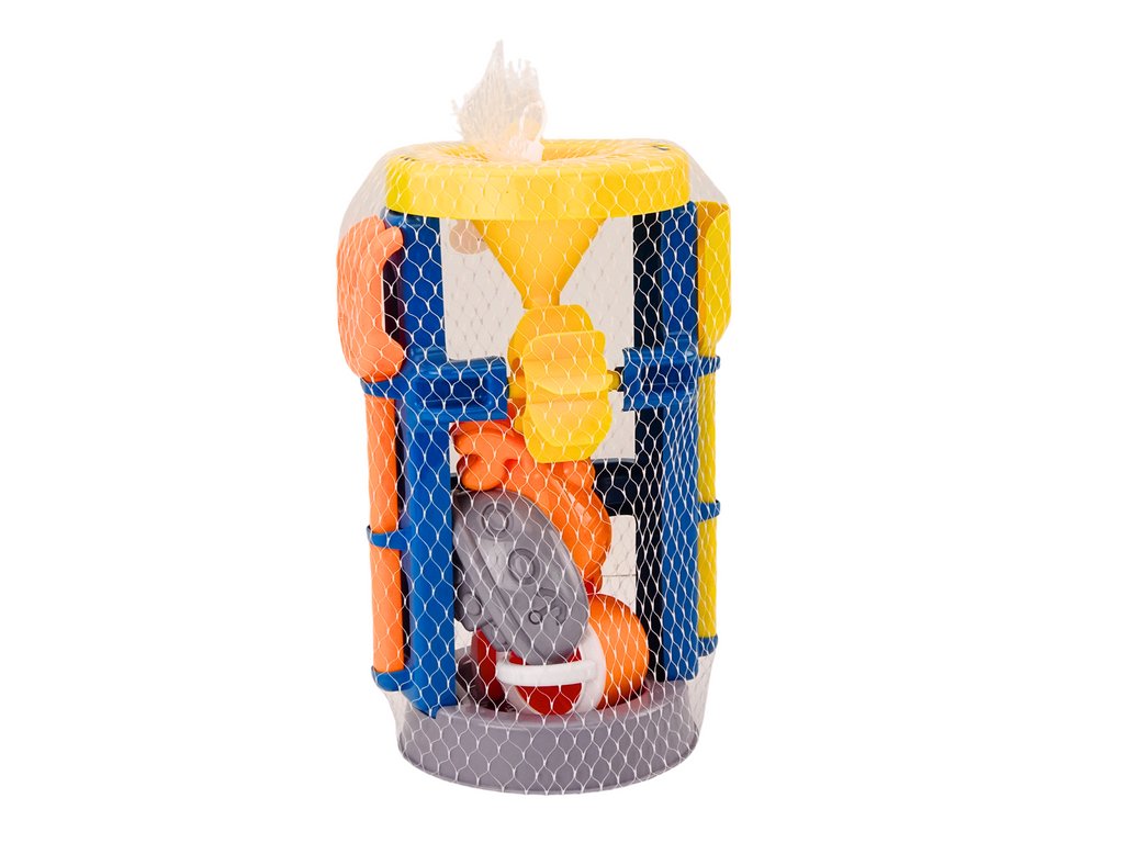 Setul de grădină cu râșniță este un echipament complet pentru micuții pasionați de plajă sau copiii cărora le place să se joace în cutia cu nisip. Elementul principal al setului este o râșniță mare cu două roți, care oferă dublă utilizare: pe de o parte, are o sită practică pentru cernerea nisipului, pe de altă parte, o pâlnie care facilitează dozarea precisă a nisipului în construcții. Această soluție practică face jocul mai eficient și creativ.
