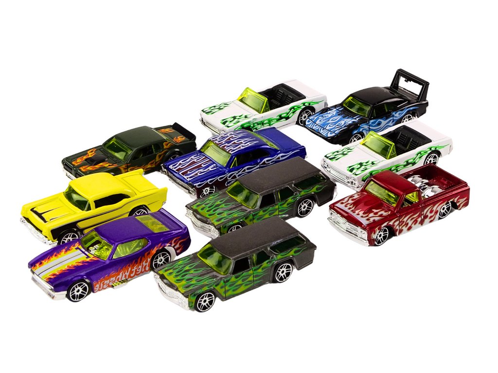 Setul de mașini de jucărie din metal este o colecție excepțională de zece modele diferite care combină design unic, caracter distinctiv și flăcări dinamice pictate pe laterale. Aceste flăcări indică faptul că aceste mașini sunt pregătite pentru o plimbare rapidă și interesantă oriunde apar.