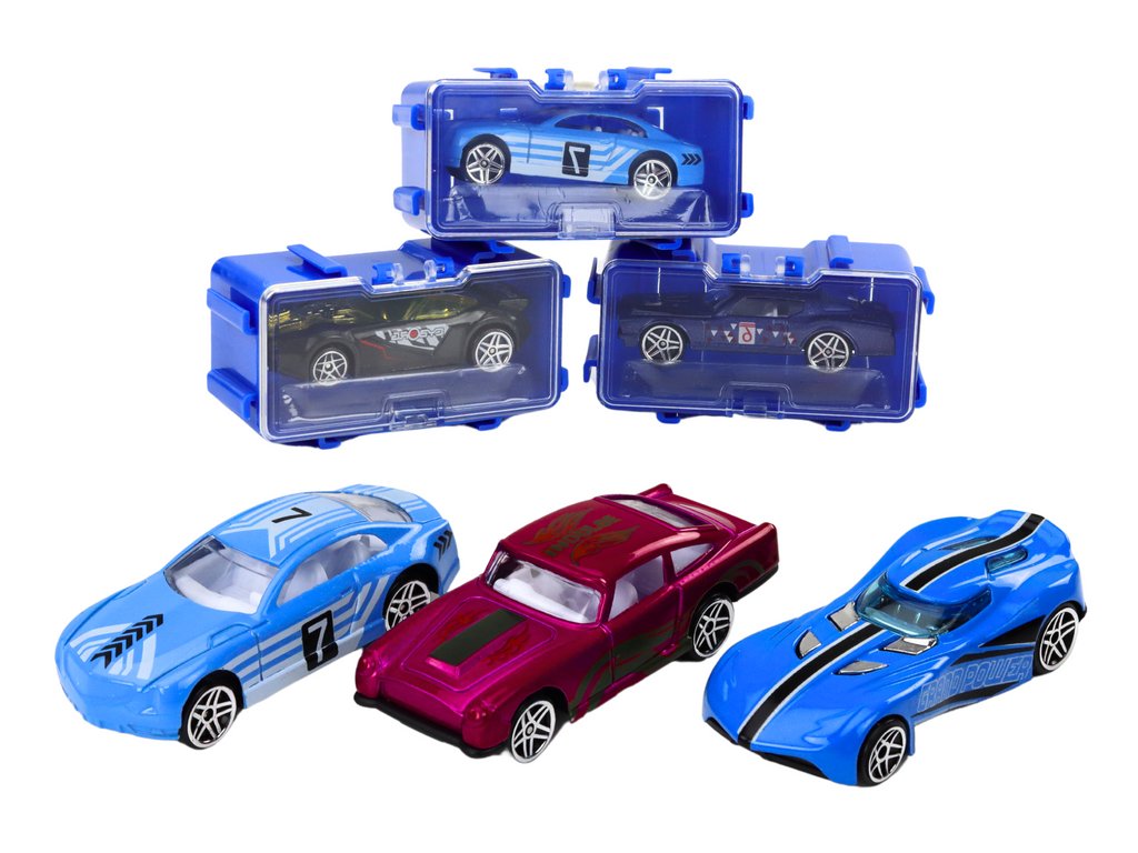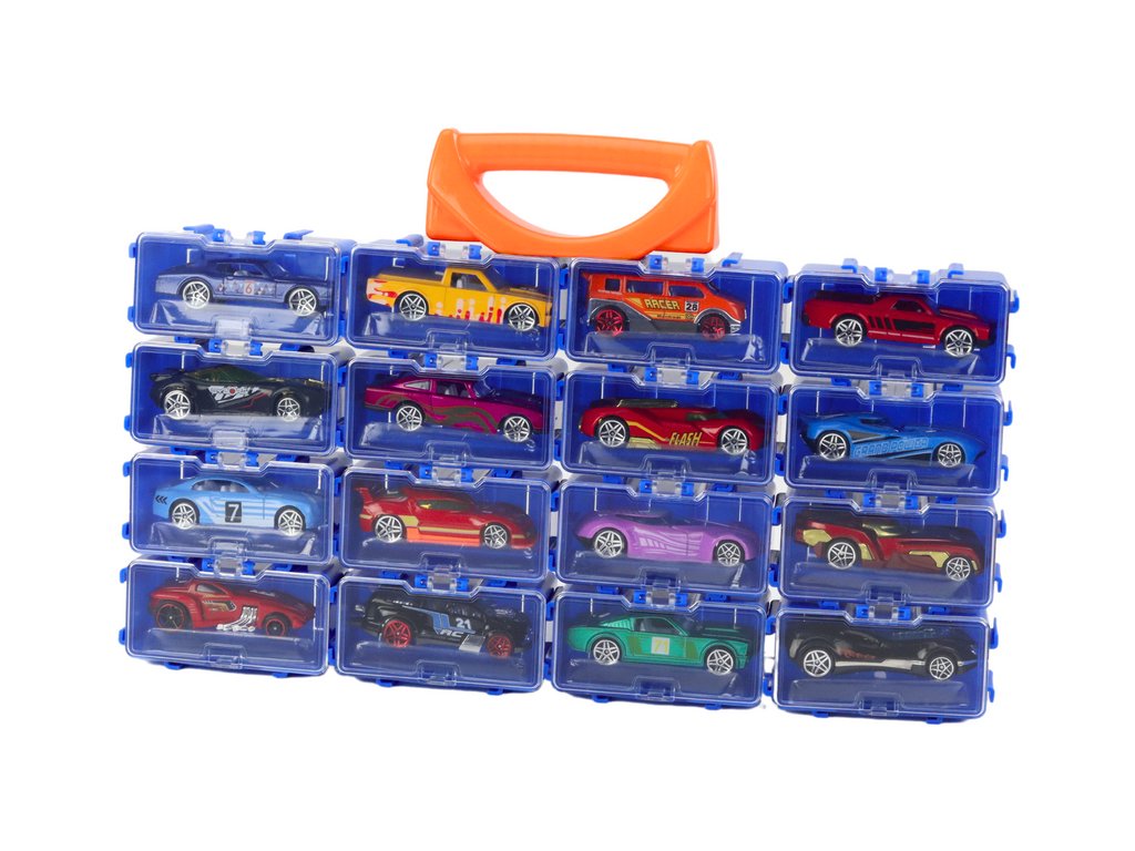 Toate mașinile de jucărie sunt ambalate cu grijă într-o cutie practică, care nu este doar estetică, ci și funcțională. Husa este echipata cu un maner puternic, datorita caruia copilul poate transporta cu usurinta jucariile sale preferate oriunde doreste sa se joace. Interiorul carcasei contine compartimente care asigura ca fiecare masina de jucarie are propriul loc. Compartimentele se închid, ceea ce împiedică mișcarea mașinilor de jucărie în timpul transportului.