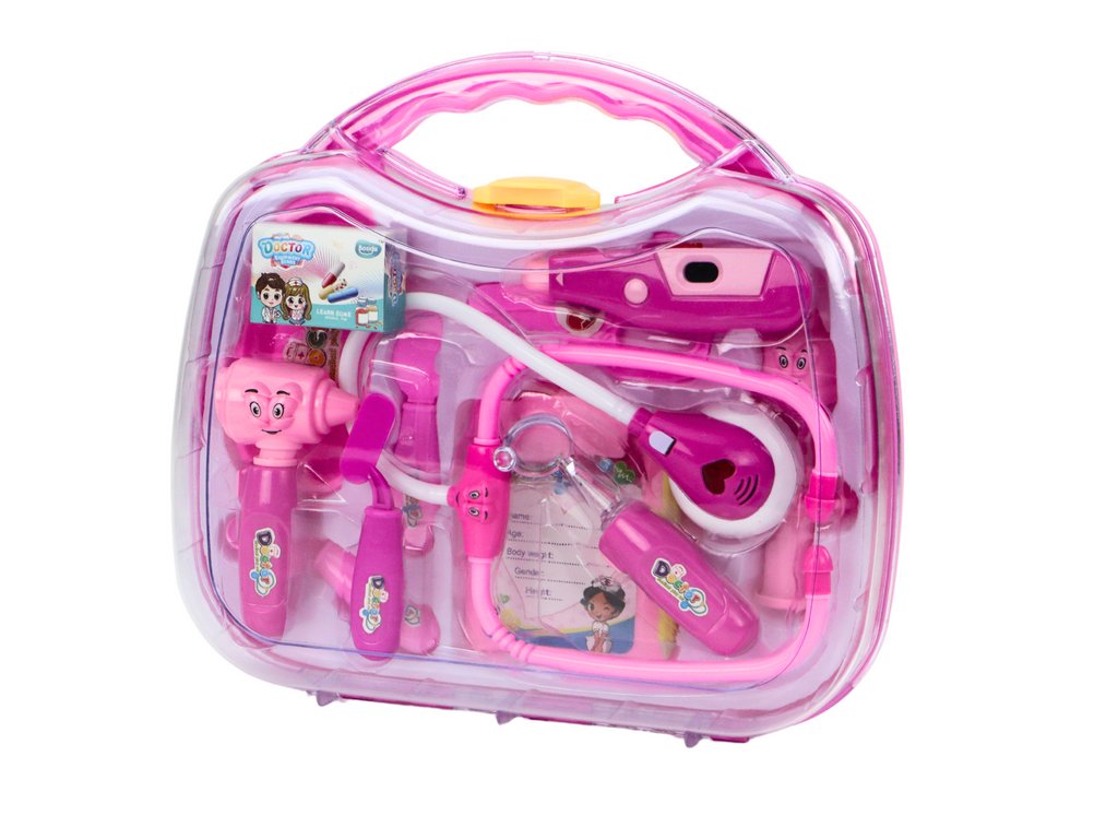 Carcasa în care se află întregul set nu este doar estetică și atractivă datorită culorii sale roz, ci și foarte practică. Este robust și ușor de transportat, permițând copiilor să ia întregul set cu ei oriunde. Datorită acestui fapt, copilul poate avea întotdeauna la îndemână instrumentele sale medicale preferate și gata pentru proceduri ulterioare.