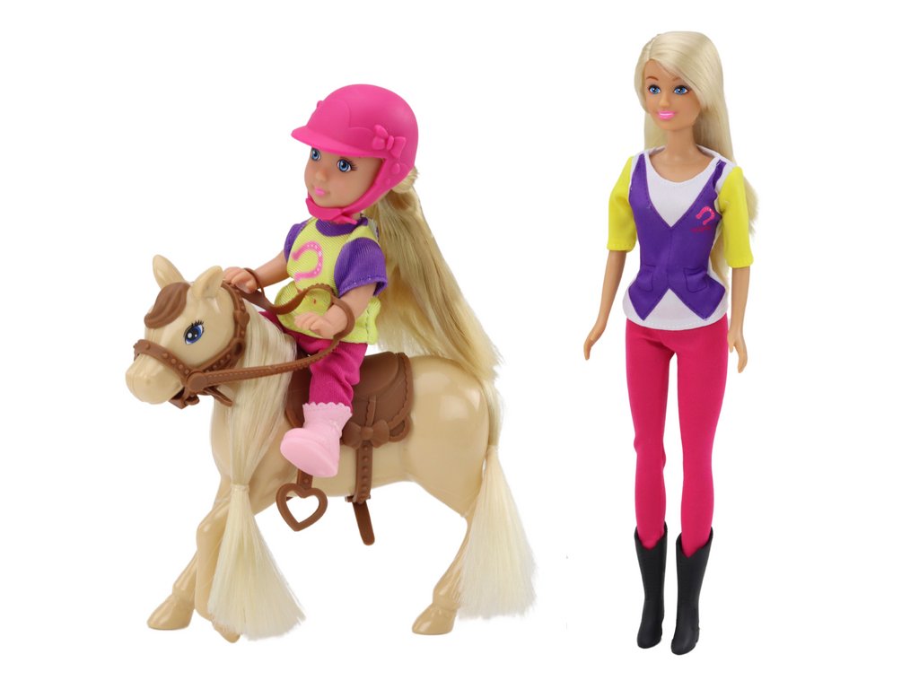 Setul include si o papusa mica, insotitorul ideal pentru papusa principala in aventurile ei cu caii. Ambele păpuși sunt echipate cu haine speciale de călărie, ceea ce adaugă autenticitate jocului. Păpușa mai mică are și o cască pentru a o proteja de căderea de pe ponei.