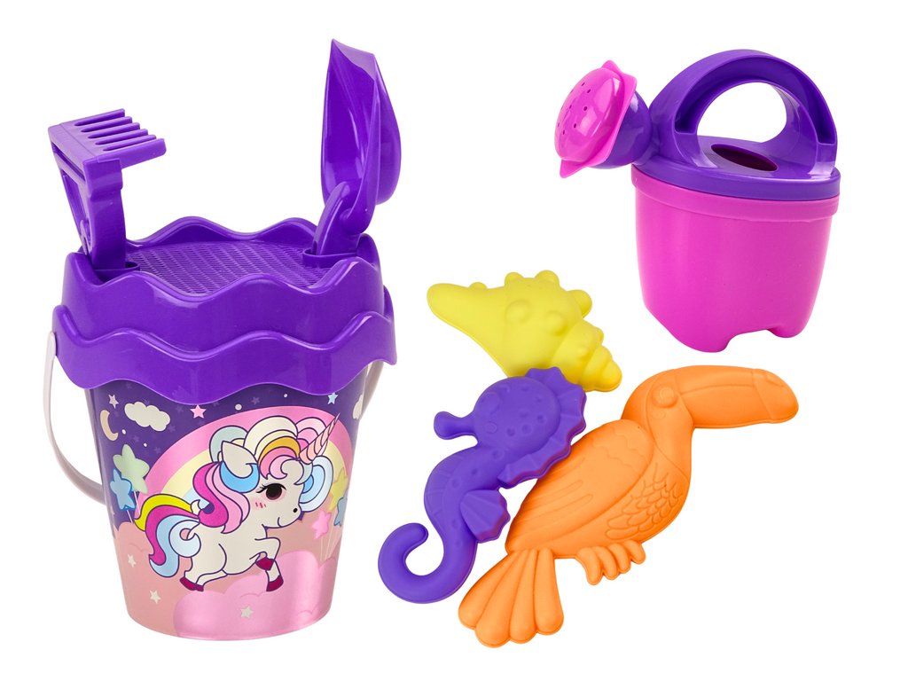 Set Nisip Găleată Lopată Aluat Stropitor Unicorn Violet